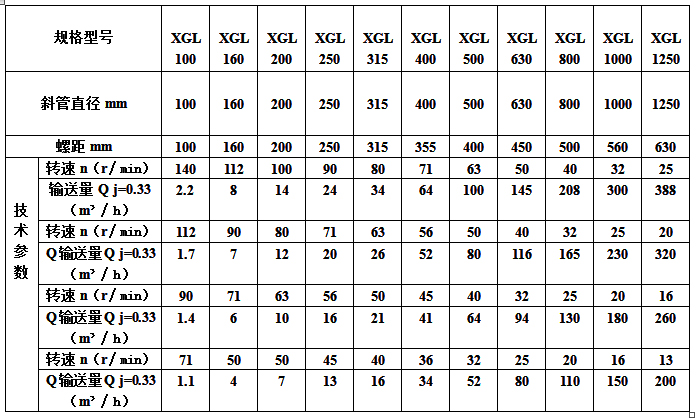 XGL斜管加料機(jī)規(guī)格及技術(shù)參數(shù)表: